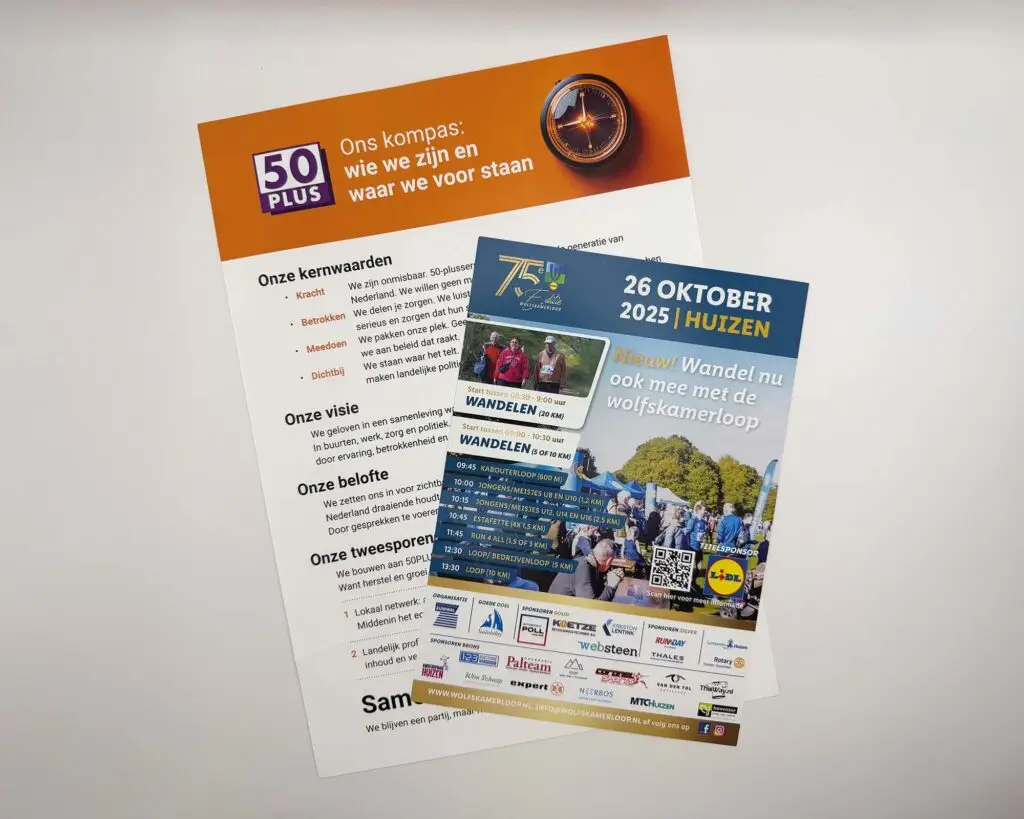 Ons klantenbestand bestaat o.a. uit midden- en kleinbedrijven en particulieren. Wij maken drukwerk van heel klein tot HEEL GROOT, op dun papier, dik karton, kunststof en textiel. Doorgaans verrichten we alles onder één dak, dat scheelt niet alleen in levertijd, maar vooral ook geld.